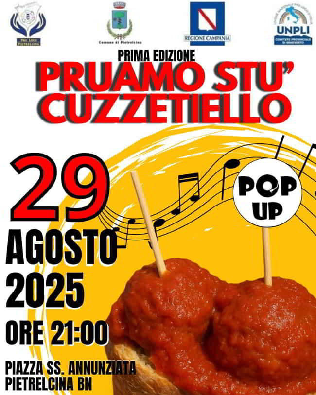 A Pietrelcina, in provincia di Benevento, la pro loco organizza la prima edizione di Pruamo stu’ Cuzzetiello il 29 Agosto 2025.