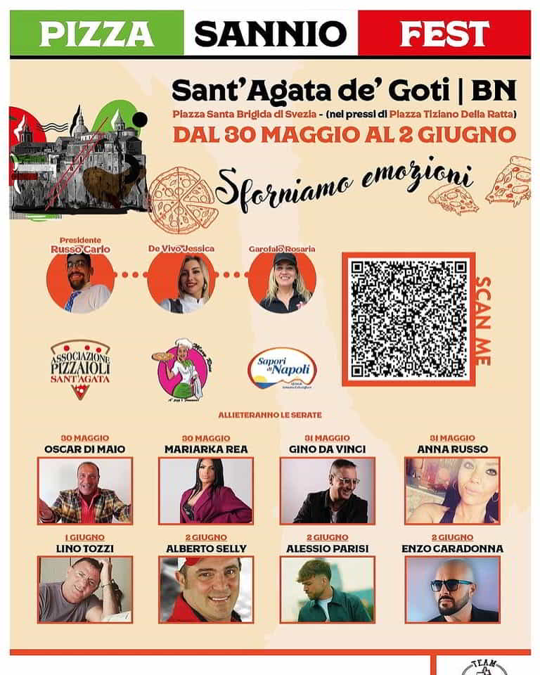 A Sant’Agata de’ Goti, in provincia di Benevento, dal 30 Maggio al 2 Giugno 2025, andrà di scena il Pizza Sannio Fest. L’evento si terrà