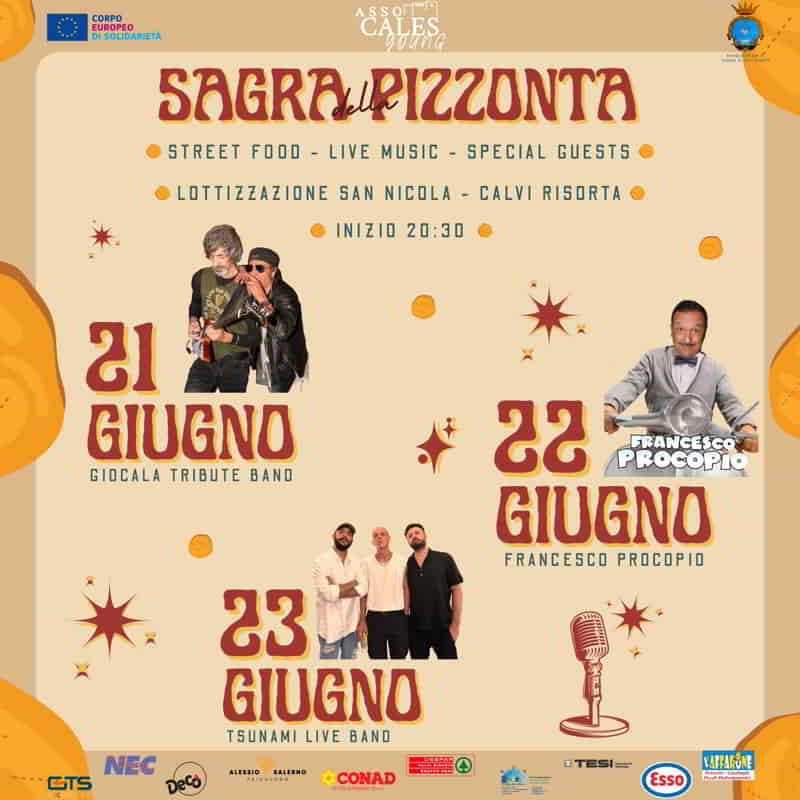 L’associazione Asso Cales Young presenta la Sagra della Pizzonta, il 20-21 e 22 Giugno 2025 a Calvi Risorta in provincia di Caserta, localitΓ San Nicola.