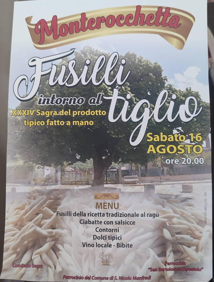 A Monterocchetta, frazione del comune di San Nicola Manfredi in provincia di Benevento, il 16 Agosto alle ore 20.00, andrร di scena la manifestazione Fusilli