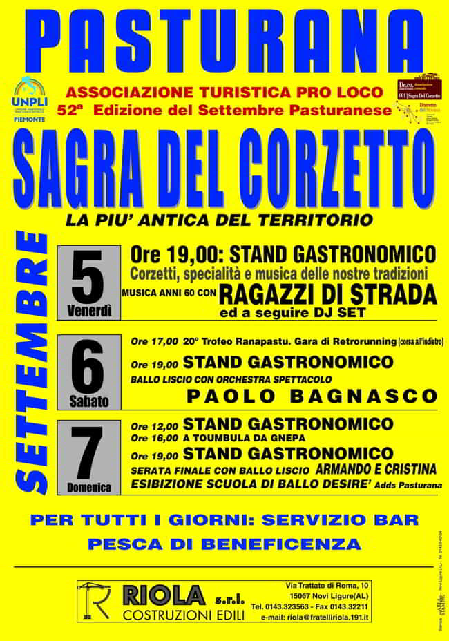 A Pasturana, in provincia di Alessandria – Piemonte, andrร di scena la 53 esima edizione della Sagra del Corzetto, il 5-6 e 7 Settembre 2025.