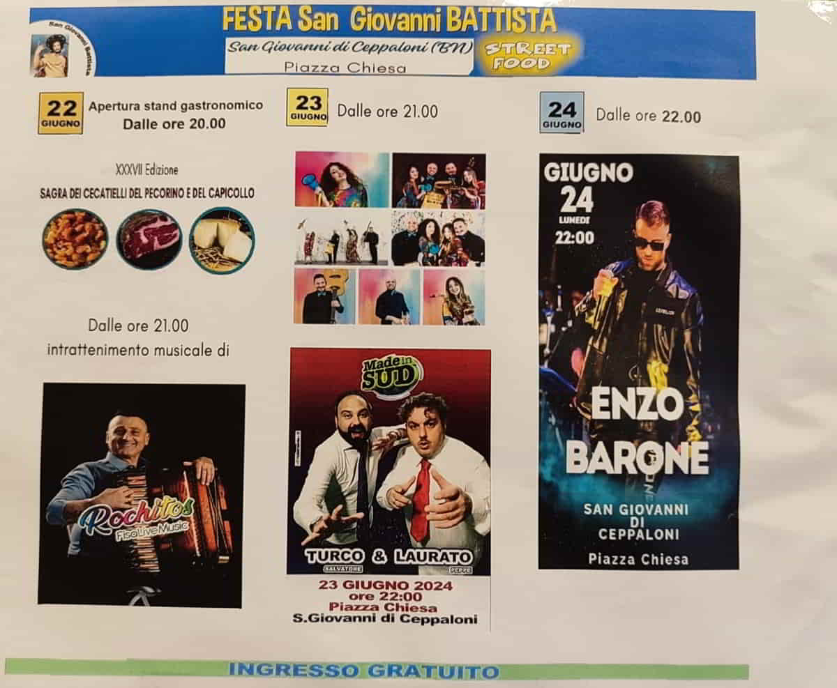 In occasione dei Solenni Festeggiamenti della NativitΓ di San Giovanni Battista, patrono di San Giovanni di Ceppaloni 22 Giugno 2024: XXXVII Sagra dei Cecatielli e