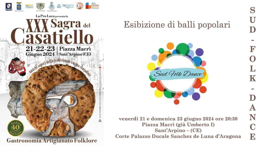 La Pro Loco di Sant’Arpino presenta la XXX edizione della Sagra del Casatiello. La manifestazione si terrร dal 21 al 23 giugno 2024 in piazza