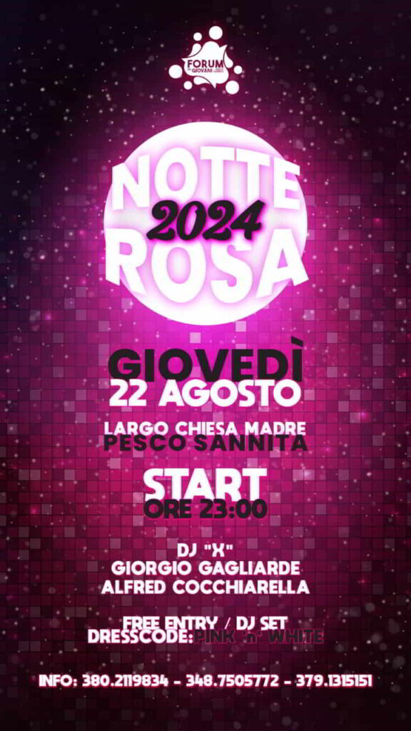 Il Forum dei Giovani presenta l’evento Notte Rosa, a Pesco Sannita in provincia di Benevento, il 22 Agosto 2024.
