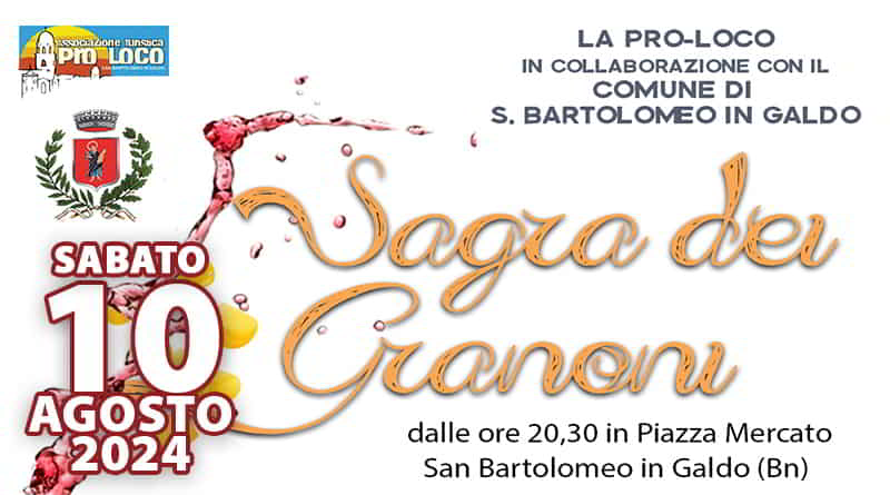 La Pro Loco in collaborazione con il Comune di San Bartolomeo in Galdo, organizza Sabato 10 Agosto 2024, la “Sagra dei Granoni” dalle ore 20:30