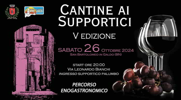 La Pro Loco Sbig, con l’amministrazione comunale, presenta la V edizione dell’evento Cantine ai Supporti, sabato 26 Ottobre dalle ore 20:00 a San Bartolomeo in