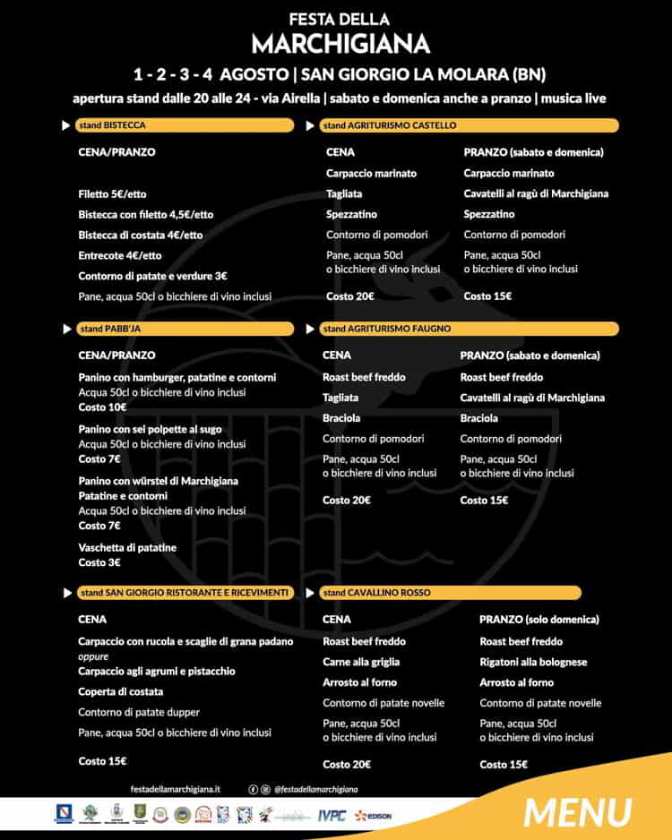 Dal 3 al 6 Agosto 2023 a San Giorgio la Molara, in provincia di Benevento “Festa della Marchigiana“. E’ possibile prenotare al seguente sito web.