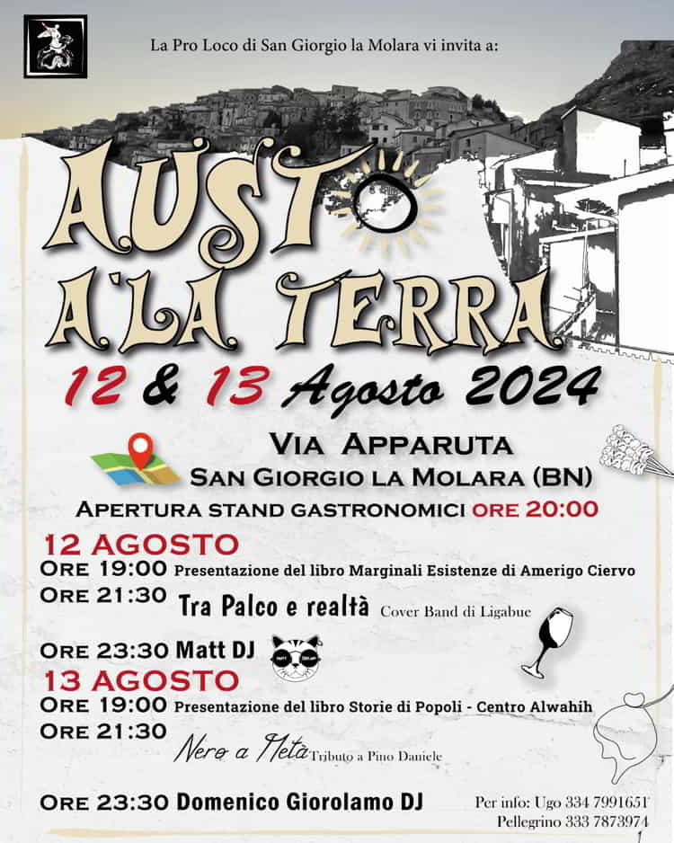 Torna Austo A’ la Terra 2024! Appuntamento il 12 e 13 agosto 2024 in via Apparuta, San Giorgio La Molara provincia di Benevento. Potrete gustare