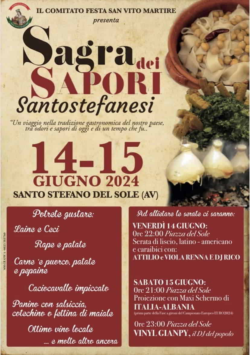 Il Comitato Festa di San Vito Martire presenta la Sagra dei Sapori Santostefanesi, il 14 e 15 Giugno 2024 a Santo Stefano del Sole in
