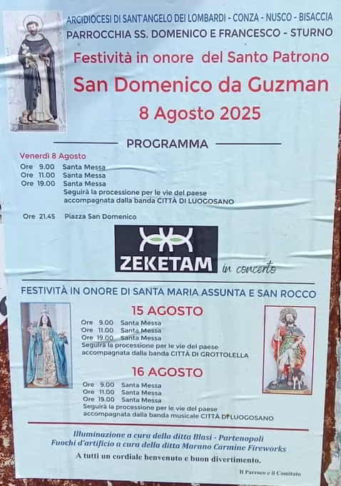 La Parrocchia SS. Domenico e Francesco di Sturno organizza la Festività in onore del Santo Patrono San Domenico da Cuzman, l’8 Agosto 2025. La serata