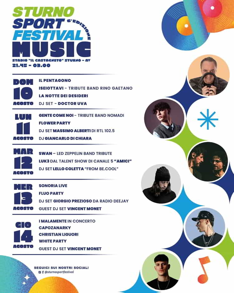 A Sturno in provincia di Avellino, dal 10 al 14 Agosto 2025, andrà di scena la quinta edizione dello Sturno Sport Festival. Si ringrazia Domenico