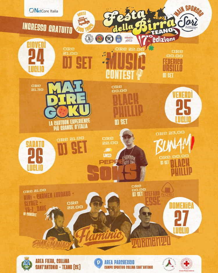 presso l’Area Fiera, Collina di S. Antonio, Teano in provincia di Caserta, 17 esima edizione della Festa della Birra. Ingresso gratuito.